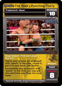 Requirement: First card played this turn. Search your Arsenal for an Assault with 'punch' in the title, reveal it, put it in your hand, and shuffle. Successfully play an Assault with 'punch' in the title: you may put this card from your Ring into your hand.