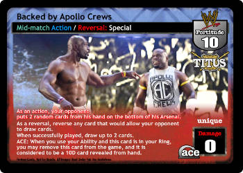 Can only be played after a successfully played maneuver or as a Counter. Put up to 1 card from your Ringside on the bottom of your Arsenal.