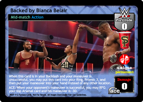 Can only be played after a successfully played maneuver, or when you have greater Raw cards in Ring. When this card is unsuccessfully played, you may discard 2 cards and then put it back in your hand instead.