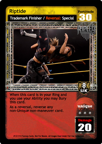 As a maneuver, this card is -5F and can only be played after a successfully played maneuver. As a reversal, reverse any non-Trademark-Finisher maneuver and end your opponent's turn.