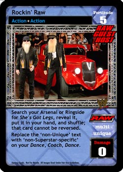 Search your Arsenal or Ringside for She's Got Legs, reveal it, put it in your hand, and shuffle; that card cannot be reversed. Replace the µnon-Unique' text with µnon-Superstar-specific' on your Dance, Coach, Dance.