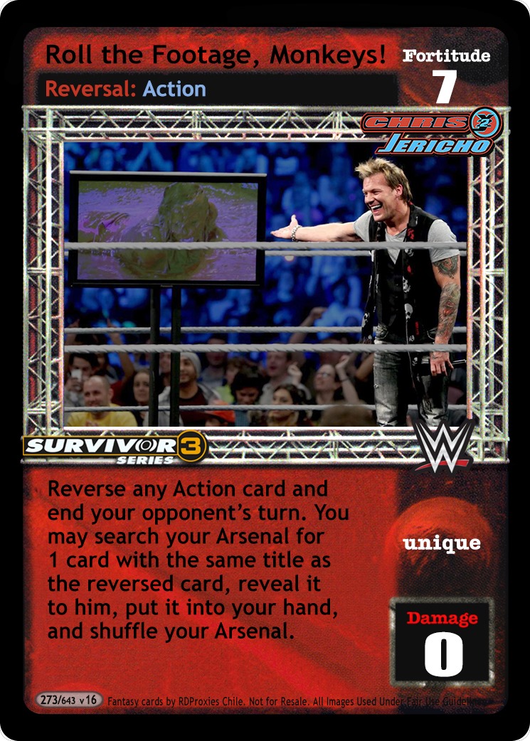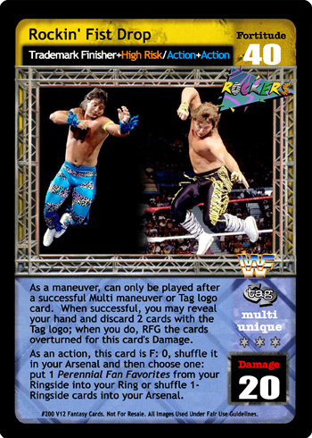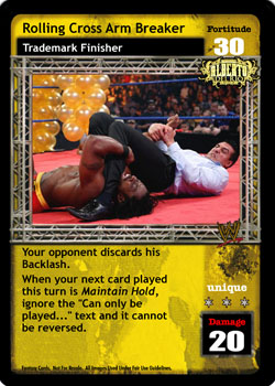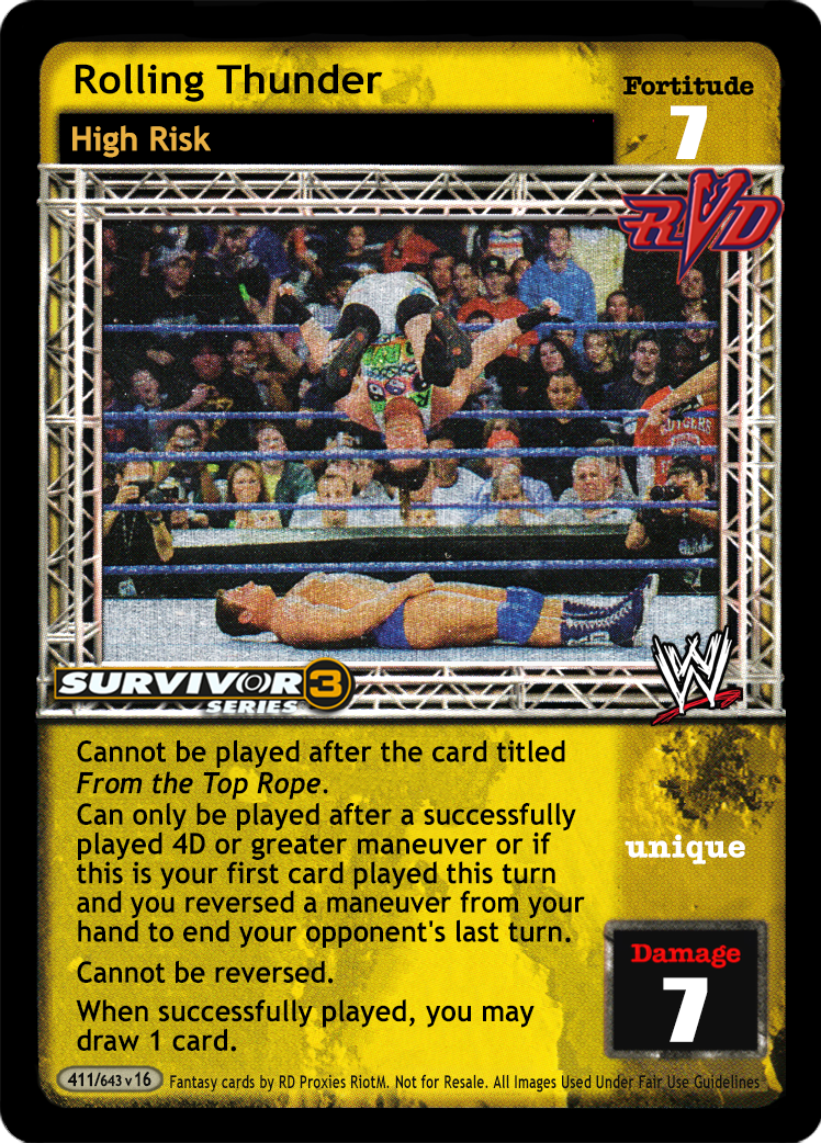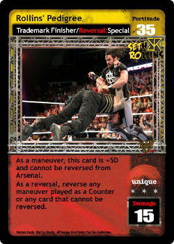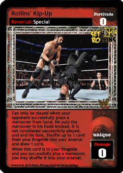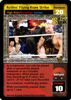 Cannot be reversed. Cannot be played after the card titled From the Top Rope. Can only be played after a successfully played 4D or greater maneuver or if this is the first card played of your turn and you reversed a maneuver from your hand to end your opponent's last turn. You may draw 1 card.