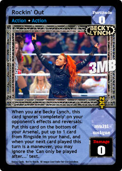 When you are Becky Lynch, this card ignores 'completely' on your opponent's effects and reversals. Put this card on the bottom of your Arsenal, put up to 1 card from Ringside in your hand, and when your next card played this turn is a maneuver, you may ignore the 'Can only be played after...' text.