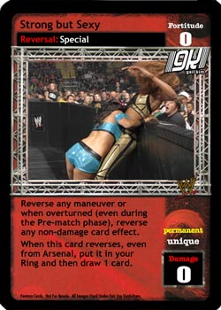 When this card is in your hand, your opponent plays a non-maneuver card, and it's not his first card played that turn, you may reveal this card, shuffle it into your Arsenal, blank the text and damage of his card, and end his turn. When this card is revealed or overturned for your Superstar-specific effects, you may shuffle 1- RFG cards (except a non-hybrid reversal) into your Arsenal.