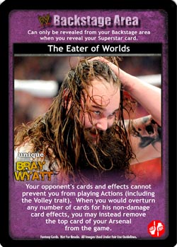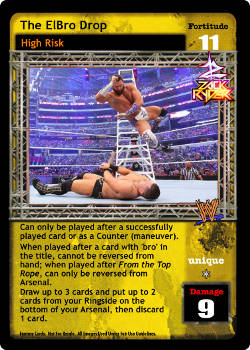 Can only be played after a successfully played card or as a Counter (maneuver). When played after a card with 'bro' in the title, cannot be reversed from hand; when played after From the Top Rope, can only be reversed from Arsenal. Draw up to 3 cards and put up to 2 cards from your Ringside on the bottom of your Arsenal, then discard 1 card.