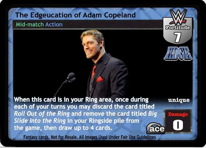When this card is in your Ring area, once during each of your turns you may discard the card titled Roll Out of the Ring and remove the card titled Big Slide Into the Ring in your Ringside pile from the game, then draw up to 4 cards.