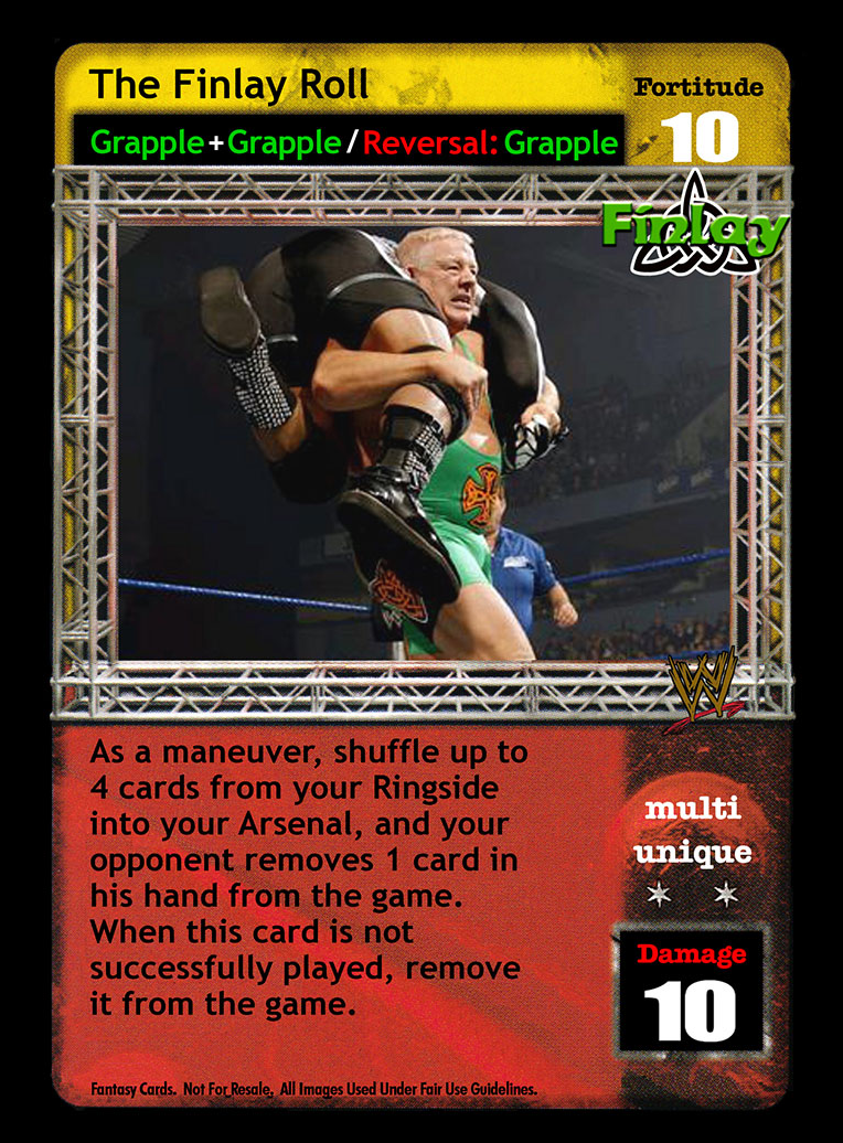As a maneuver, shuffle up to 4 cards from your Ringside into your Arsenal, and your opponent removes 1 card in his hand from the game. When this card is not successfully played, remove it from the game.