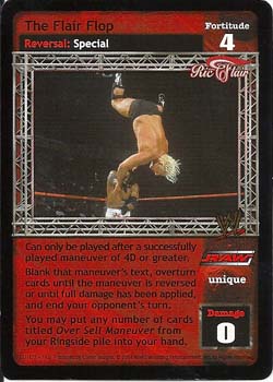 Can only be played after a successfully played maneuver of 4D or greater. Blank that maneuver's text, overturn cards until the maneuver is reversed or until full damage has been applied, and end your opponent's turn. You may put any number of cards titled Over Sell Maneuver from your Ringside pile into your hand.