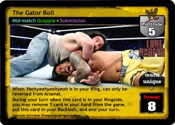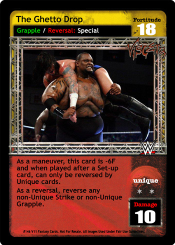 As a maneuver, this card is -6F and when played after a Set-up card, can only be reversed by Unique cards. As a reversal, reverse any non-Unique Strike or non-Unique Grapple.