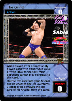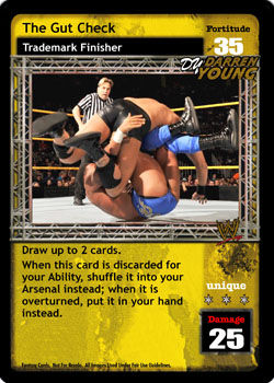 Reverse any non-Unique maneuver or when overturned, remove this card from the game to reverse any maneuver or non-damage card effect (even during the Pre-match phase). When this card is overturned for The NXT Breakout Star, you may remove it from the game. When this card is removed from the game, shuffle up to 3 cards (up to 6 if it was overturned for The NXT Breakout Star) from your Ringside into your Arsenal.