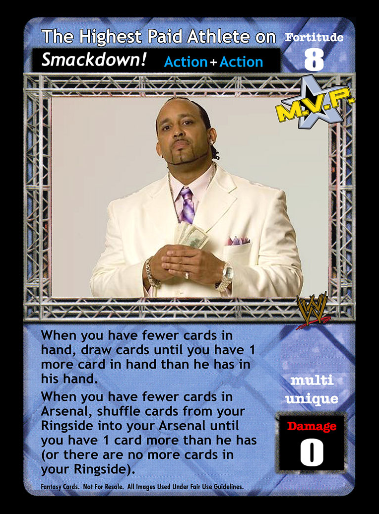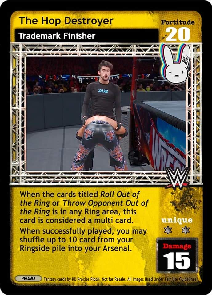 When the cards title Roll Out of the Ring or Throw Opponent Out of the Ring is in any Ring area, this card is considered a multi card. when successfully played, you may shuffle up to 10 card from your ringside pile into your arsenal