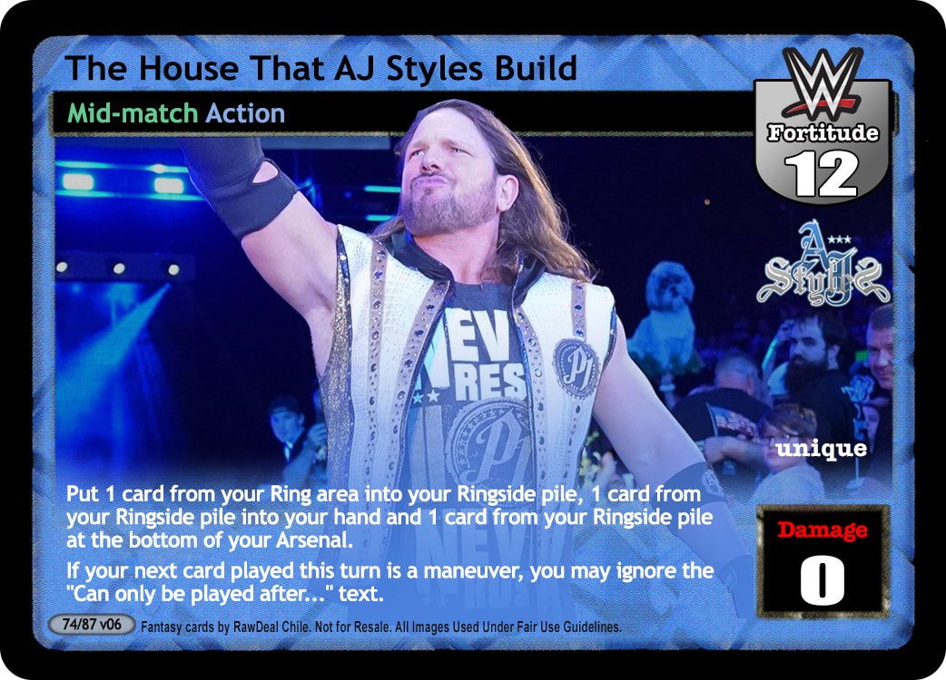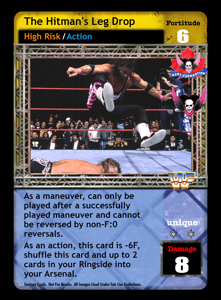 As a maneuver, can only be played after a successfully played maneuver and cannot be reversed by non-F:0 reversals. As an action, this card is -6F, shuffle this card and up to 2 cards in your Ringside into your Arsenal.