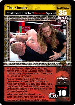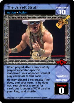 When played after a successfully played Superstar-specific maneuver, your opponent cannot play reversals to this card. He may discard 3 reversals; if he does, end your turn. If he does not, search your Arsenal for 1 card, put it under a WCW card in your Ring, and shuffle.