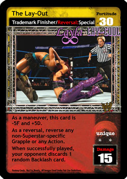 As a maneuver, this card is -5F and +5D. As a reversal, reverse any non-Superstar-specific Grapple or any Action. When successfully played, your opponent discards 1 random Backlash card.