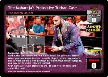 Cannot be blanked. This card is also considered We're a 3 Man Band! for your card effects. When your maneuver is unsuccessfully played, or your opponent's effects would move a non-Backlash card from your Ring or Ringside, you may put it under this card instead. Your maneuvers with blank text are -1F and +1D for each card under this card.