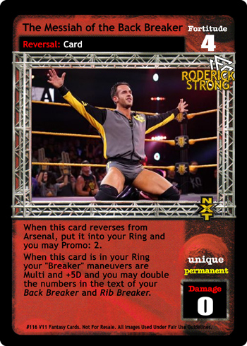 When this card reverses from Arsenal, put it into your Ring and you may Promo: 2. When this card is in your Ring your 'Breaker' maneuvers are Multi and +5D and you may double the numbers in the text of your Back Breaker and Rib Breaker.