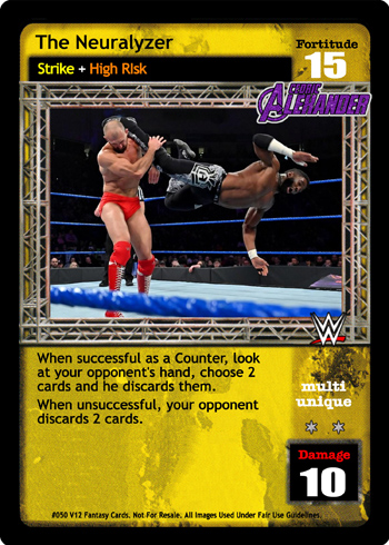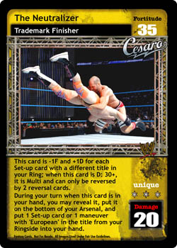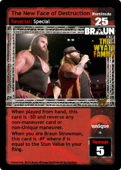 When played from hand, this card is -5D and reverse any non-maneuver card or non-Unique maneuver. When you are Braun Strowman, this card is -#F where # is equal to the Stun Value in your Ring.
