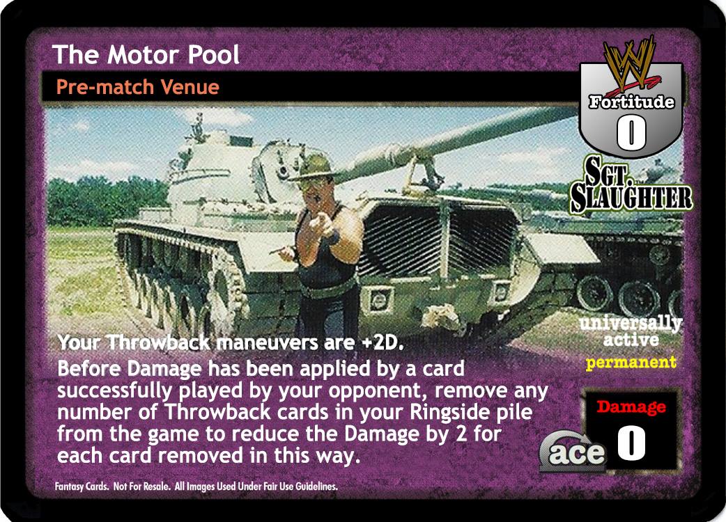 Your Throwback maneuvers are +2D. Before Damage has been applied by a card successfully played by your opponent, remove any number of Throwback cards in your Ringside pile from the game to reduce the Damage by 2 for each card removed in this way.