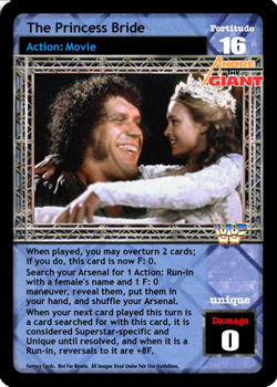When played, you may overturn 2 cards; if you do, this card is now F: 0. Search your Arsenal for 1 Action: Run-in with a female's name and 1 F: 0 maneuver, reveal them, put them in your hand, and shuffle your Arsenal. When your next card played this turn a card searched for with this card, it is considered Superstar-specific and Unique until resolved, and when it is a Run-in, reversals to it are +8F.