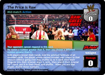 Your opponent cannot respond to this card. He names a number greater than 0, then you choose a different number greater than 0. Both players reveal their hands. Add the printed Fortitude of all revealed cards, the player whose named number was closest to that amount without going over may shuffle up to 4 cards into their Arsenal, draw 2 cards, then search their Arsenal for 1 card, put it in their hand, and shuffle. When you are that player, double those numbers.