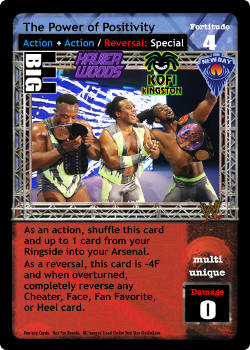 As an action, shuffle this card and up to 1 card from your Ringside into your Arsenal. As a reversal, this card is -4F and when overturned, completely reverse any Cheater, Face, Fan Favorite, or Heel card.