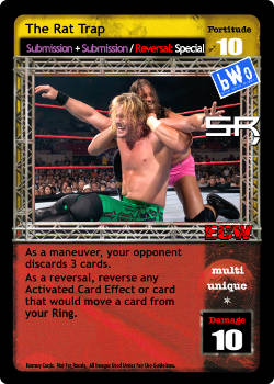 Shuffle this card, up to 1 reversal and up to 1 maneuver from your Ringside into your Arsenal, and draw 1 card. When this card is reversed, you may flip 1 card in your Ring face-down and then put this card into your hand instead.