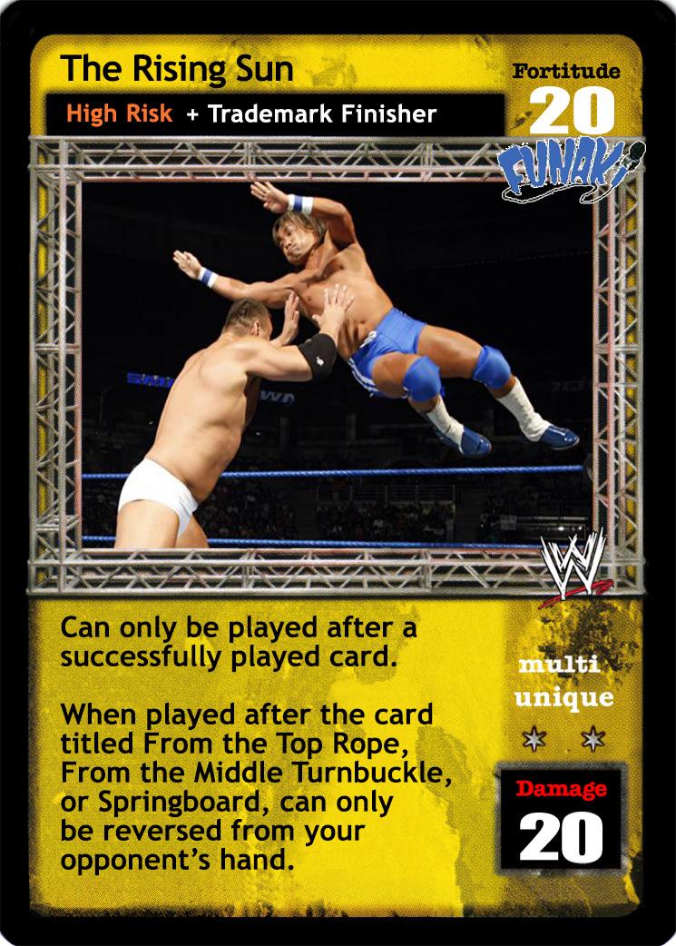 Can only be played after a successfully played card. When played after the card titled From the Top Rope, From the Middle Turnbuckle, or Springboard, can only be reversed from your opponent's hand.