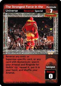 Reverse any Antic or Superstar-specific card, or any card with Momentum; search your Arsenal and Ringside for Hulkin' Up, reveal it, put it in your hand, and shuffle your Arsenal.
