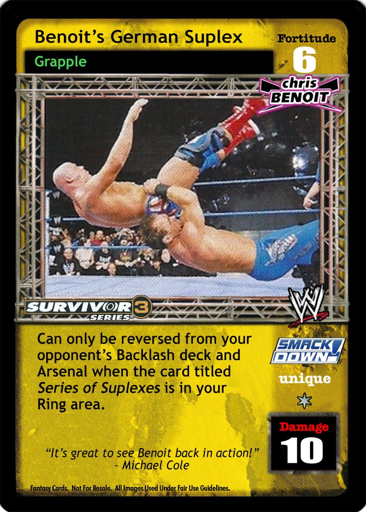 Can only be reversed from your opponent's Backlash deck and Arsenal when the card titled Series of Suplexes is in your Ring area.