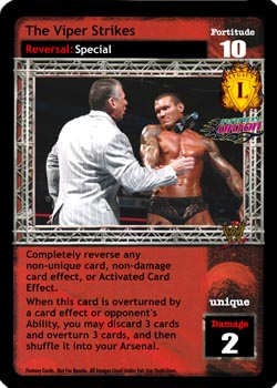 When you have lower Fortitude or fewer cards in hand, can only be reversed by Superstar-specific reversals. When your non-Unique maneuver is reversed from hand with a Unique reversal, Arsenal Search 1 non-Unique non-hybrid maneuver. When your Unique maneuver is reversed from hand by a non-Unique reversal, Arsenal Search 1 non-Superstar-specific non-hybrid Unique maneuver.
