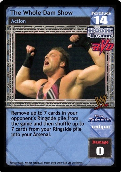 Remove up to 7 cards in your opponent's Ringside pile from the game and then shuffle up to 7 cards from your Ringside pile into your Arsenal.