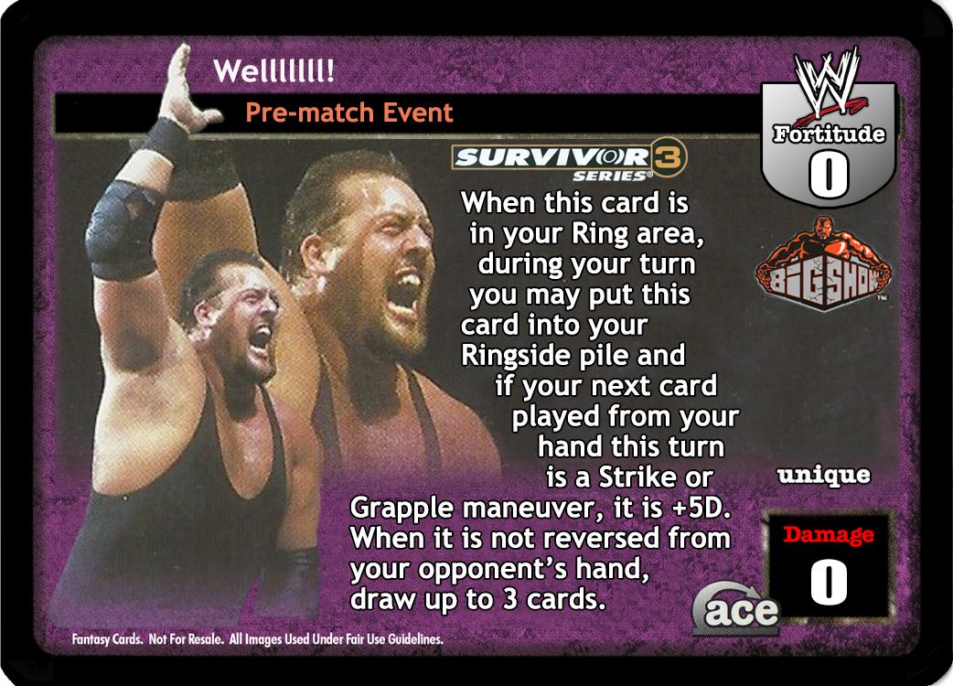 When this card is in your Ring area, during your turn you may put this card into your Ringside pile and if your next card played from your hand this turn is a Strike or Grapple maneuver, it is +5D. When it is not reversed from your opponent's hand, draw up to 3 cards.