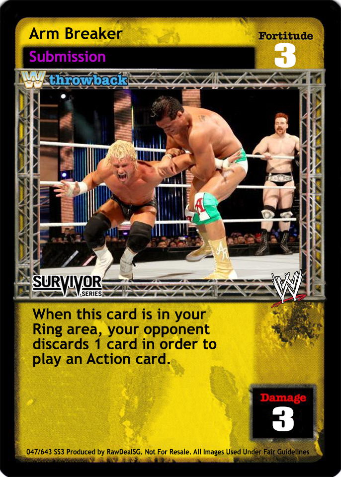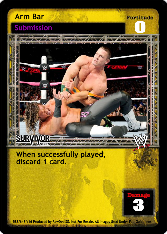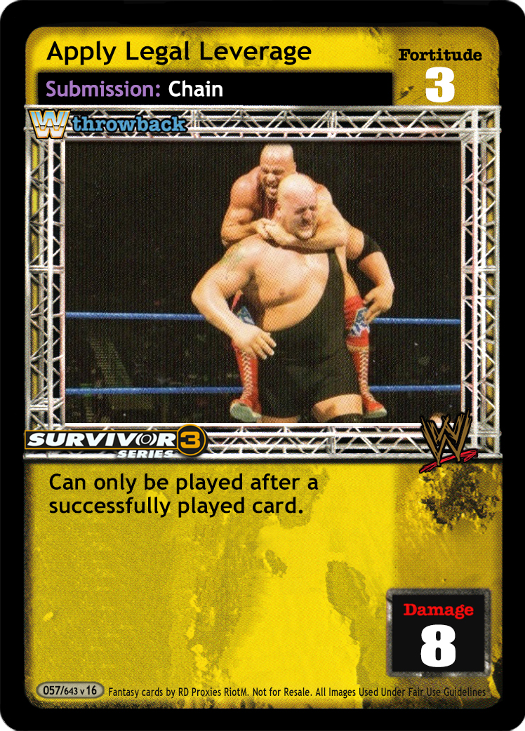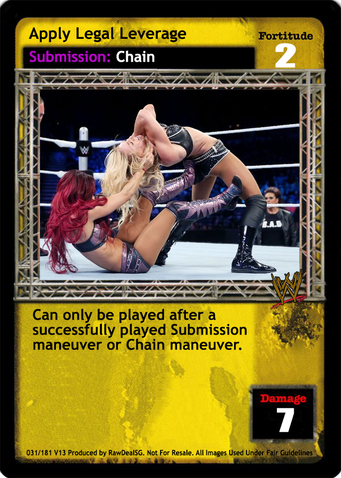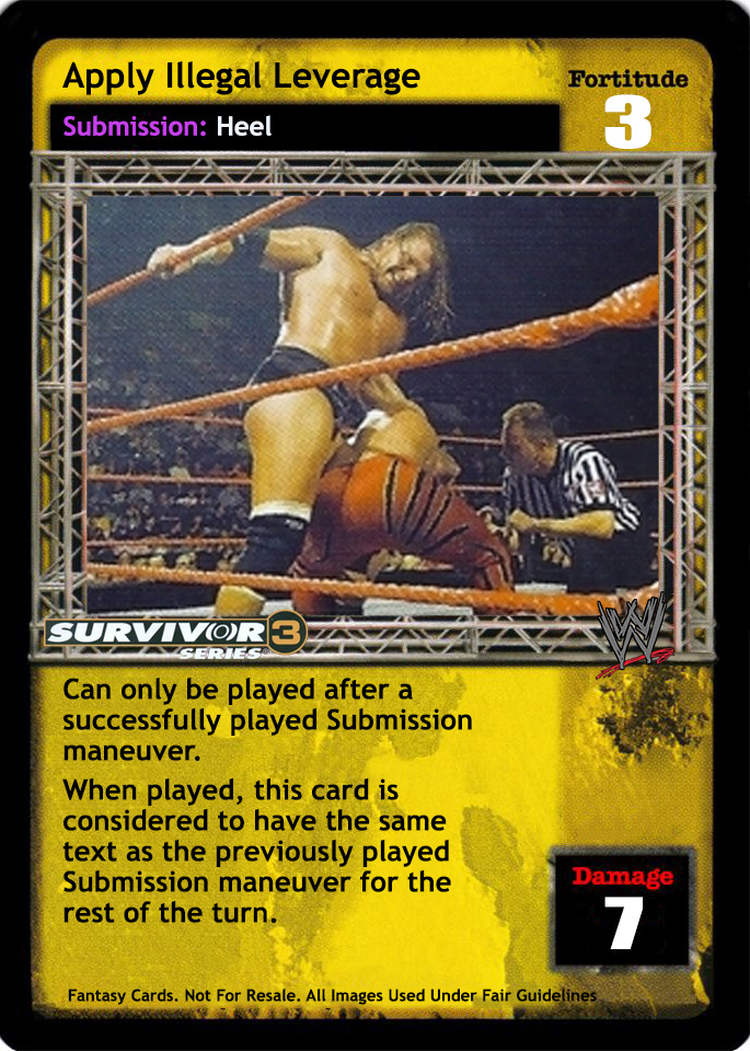 Can only be played after a successfully played Submission maneuver. When played, this card is considered to have the same text as the previously played Submission maneuver for the rest of the turn.