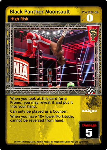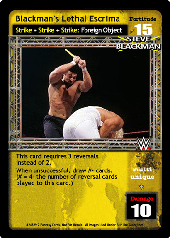 As a maneuver, this card is -10F and cannot be reversed by Elbow to the Face. As a reversal, reverse any Strike, Assault, or Extreme.