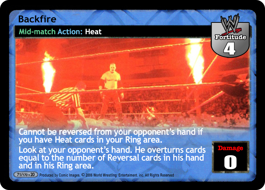 Cannot be reversed from your opponent's hand if you have Heat cards in your Ring area. Look at your opponent's hand. He overturns cards equal to the number of Reversal cards in his hand and in his Ring area.