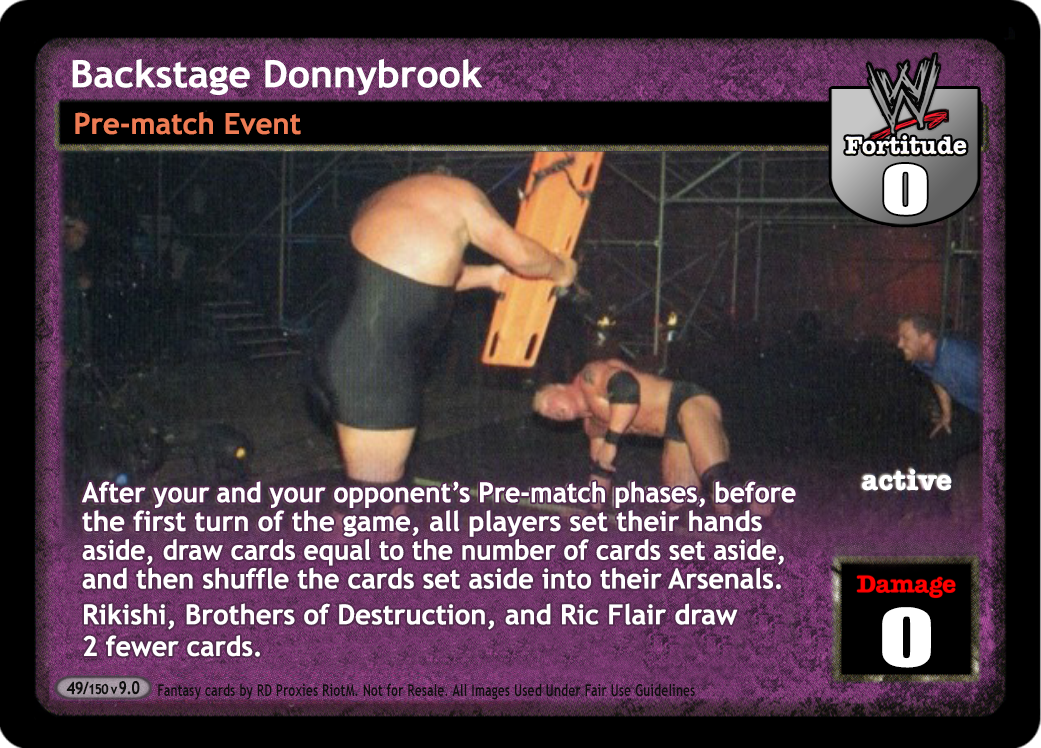After your and your opponent's Pre-match phases, before the first turn of the game, all players set their hands aside, draw cards equal to the number of cards set aside, and then shuffle the cards set aside into their Arsenals. Rikishi, Brothers of Destruction, and Ric Flair draw 2 fewer cards.