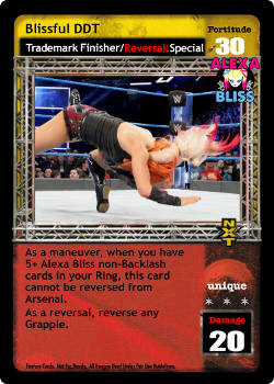 As a maneuver, when you have 5+ Alexa Bliss non-Backlash cards in your Ring, this card cannot be reversed from Arsenal. As a reversal, reverse any Grapple.
