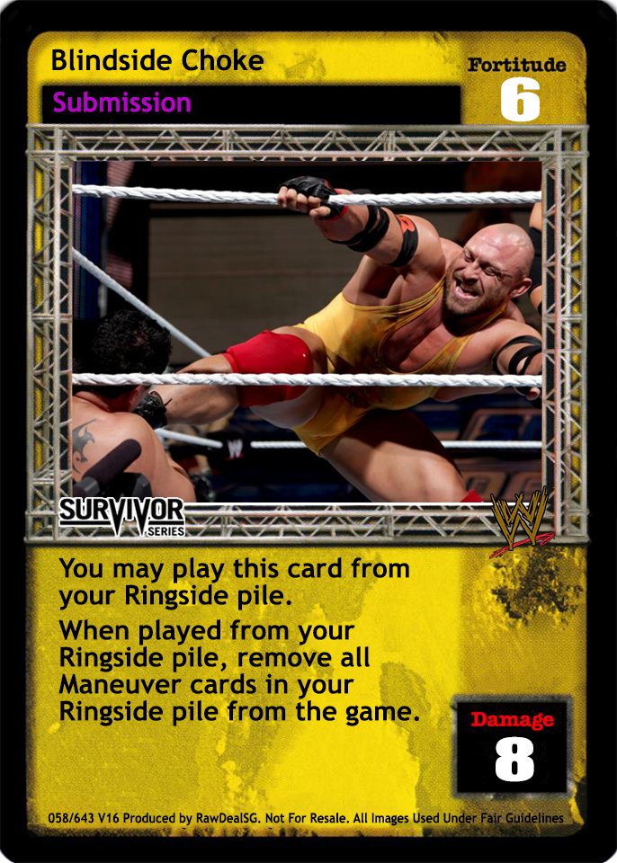 You may play this card from your Ringside pile. When played from your Ringside pile, remove all Maneuver cards in your Ringside pile from the game.