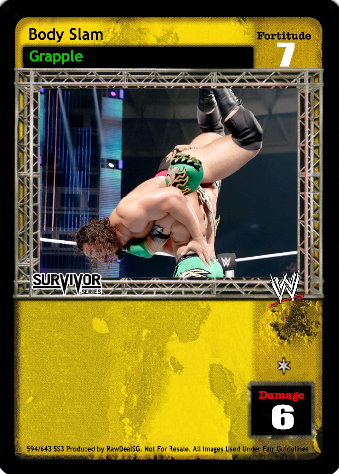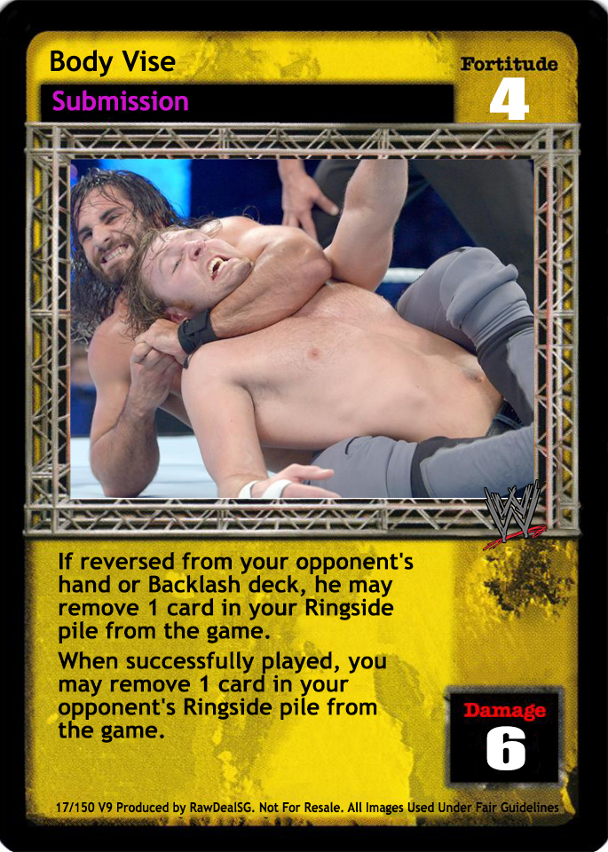 If reversed from your opponent's hand or Backlash deck, he may remove 1 card in your Ringside pile from the game. When successfully played, you may remove 1 card in your opponent's Ringside pile from the game.
