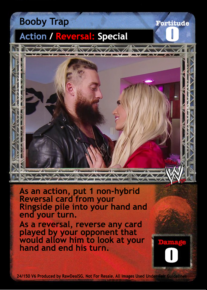 As an action, put 1 non-hybrid Reversal card from your Ringside pile into your hand and end your turn. As a reversal, reverse any card played by your opponent that would allow him to look at your hand and end his turn.