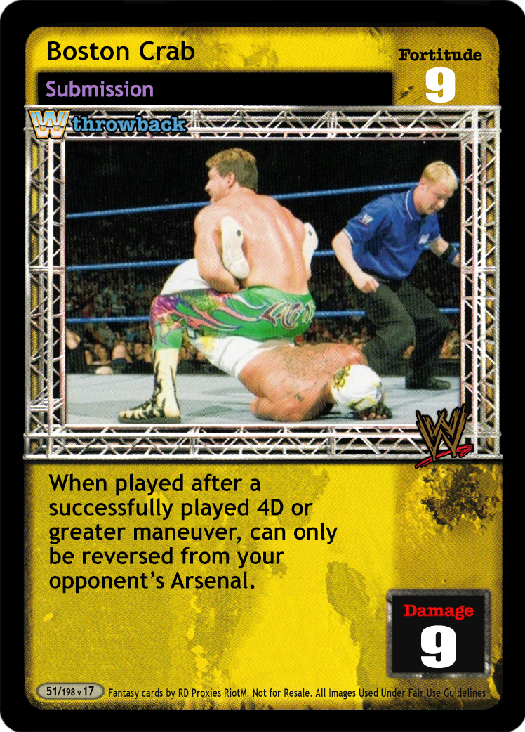 When successfully played, draw 1 card. When this card is in your Ring area, your Submission maneuvers are +2D.
