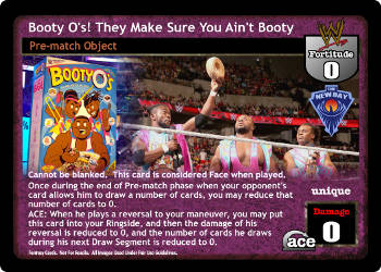 Cannot be blanked. This card is considered Face when played. Once during the end of Pre-match phase when your opponent's card allows him to draw a number of cards, you may reduce that number of cards to 0. ACE: When he plays a reversal to your maneuver, you may put this card into your Ringside, and then the damage of his reversal is reduced to 0, and the number of cards he draws during his next Draw Segment is reduced to 0.