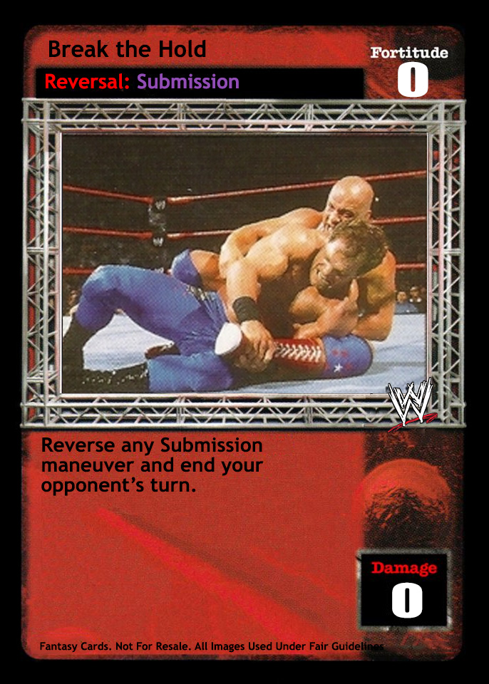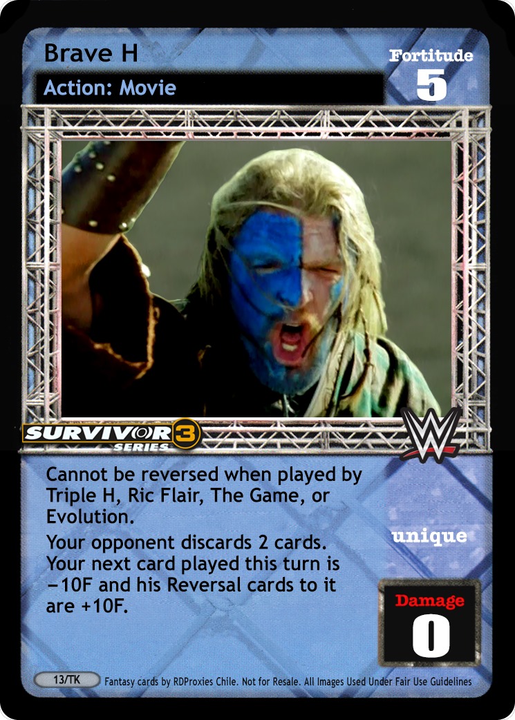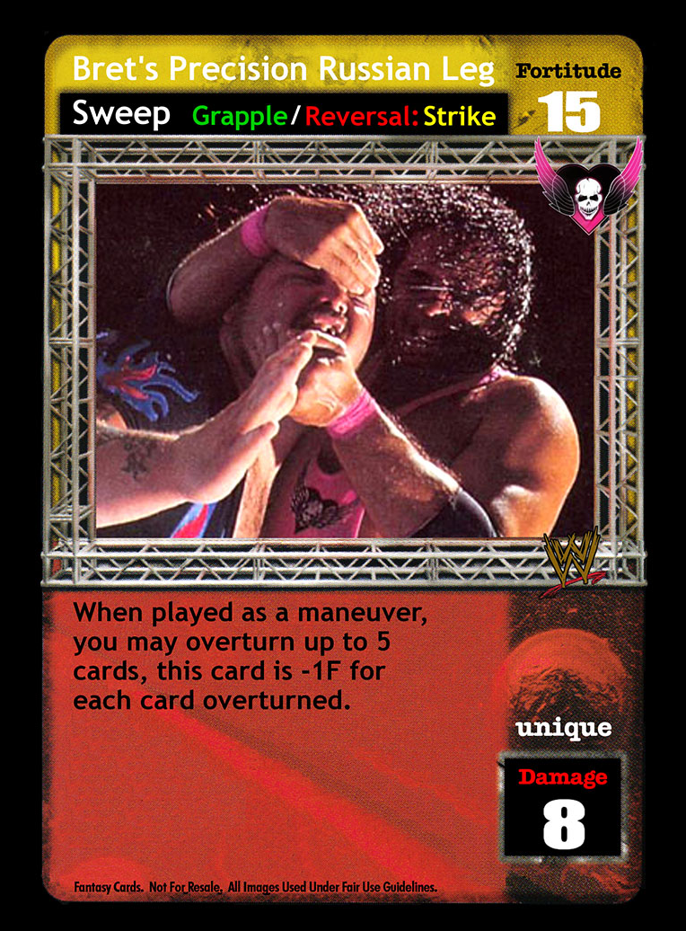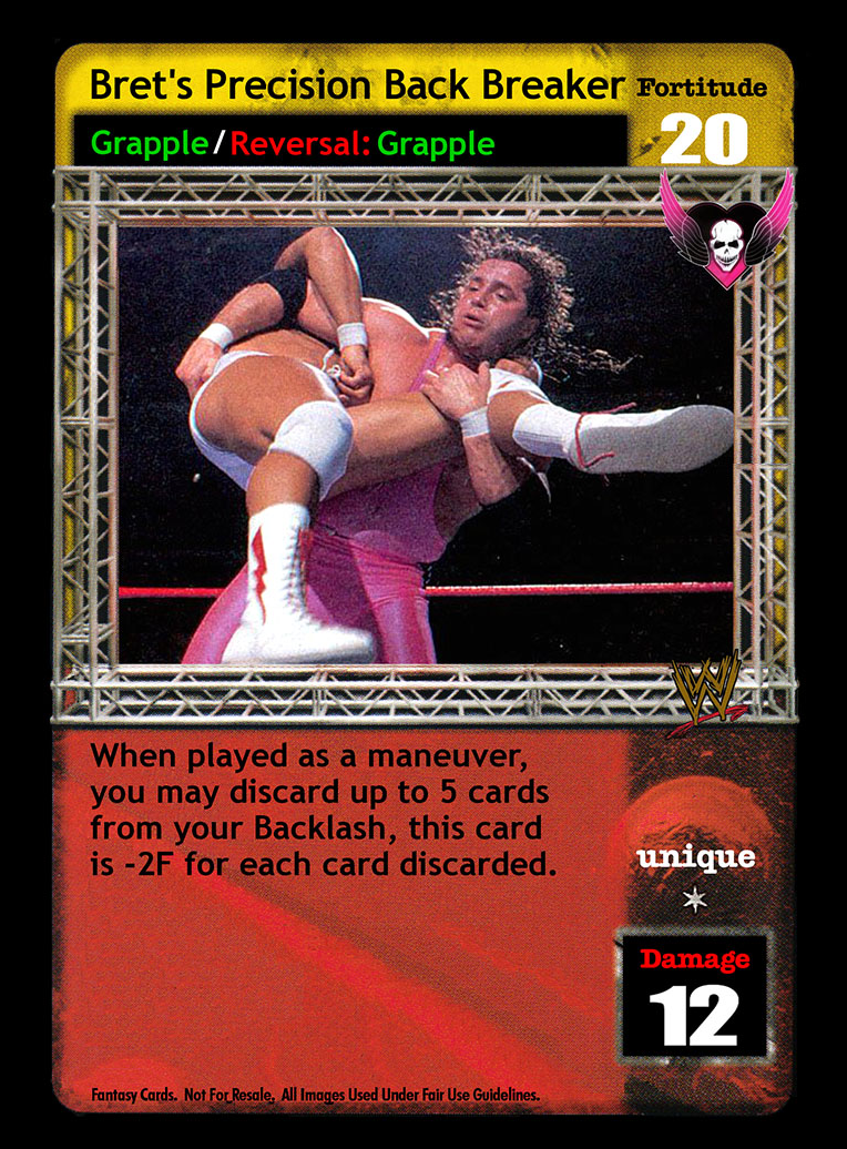 Cannot be reversed when played by Triple H, Ric Flair, The Game, or Evolution. Your opponent discards 2 cards. Your next card played this turn is -10F and his Reversal cards to it are +10F.