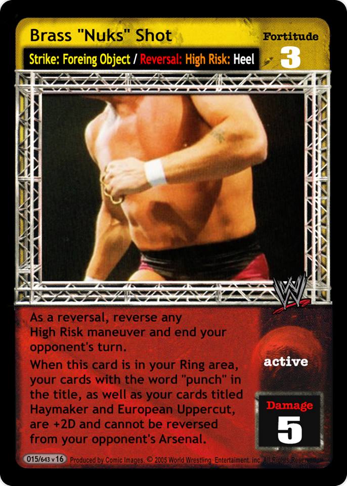 As a reversal, reverse any High Risk maneuver and end your opponent's turn. When this card is in your Ring area, your cards titled Haymaker, European Uppercut, and your cards with the word "punch" in the title are +2D and they cannot be reversed from your opponent's Arsenal.
