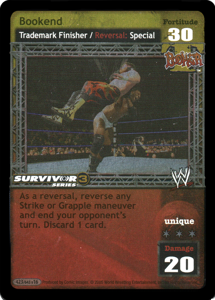 As a reversal, reverse any Strike or Grapple maneuver and end your opponent's turn. You must discard 1 card.