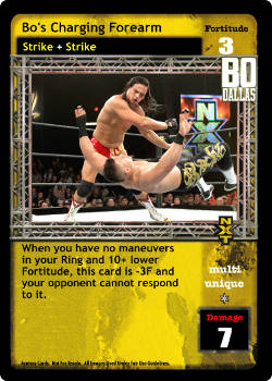 When you have no maneuvers in your Ring and 10+ lower Fortitude, this card is -3F and your opponent cannot respond to it.