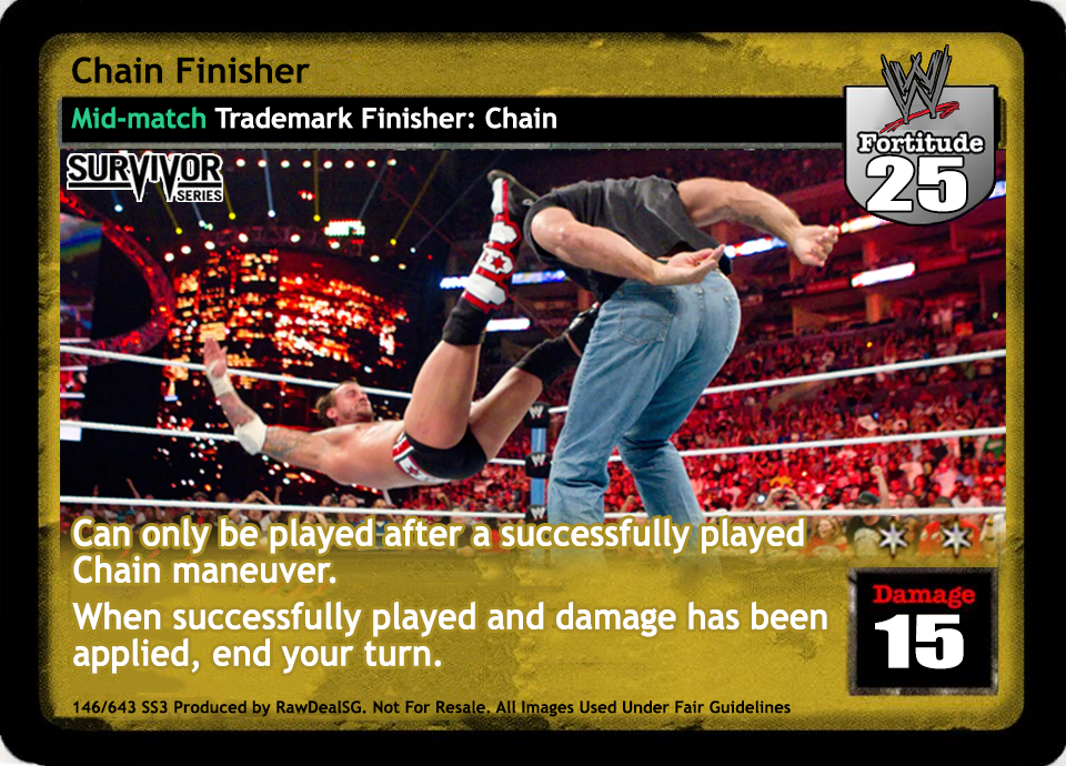 Can only be played after a successfully played Chain maneuver. When successfully played and damage has been applied, end your turn.