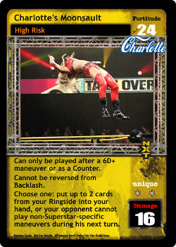 Can only be played after a 6D+ maneuver or as a Counter. Cannot be reversed from Backlash. Choose one: put up to 2 cards from your Ringside into your hand, or your opponent cannot play non-Superstar-specific maneuvers during his next turn.