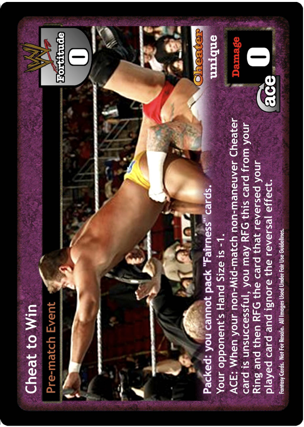 Cannot be packed when packing In The Interest Of Fairness, or when you are The Heat Seekers. Your opponent's Starting Hand Size is -1. ACE: When he reverses your non-maneuver Cheater card, you may remove this card from the game and then remove the card that reversed your Cheater card from the game and ignore the reversal effect.