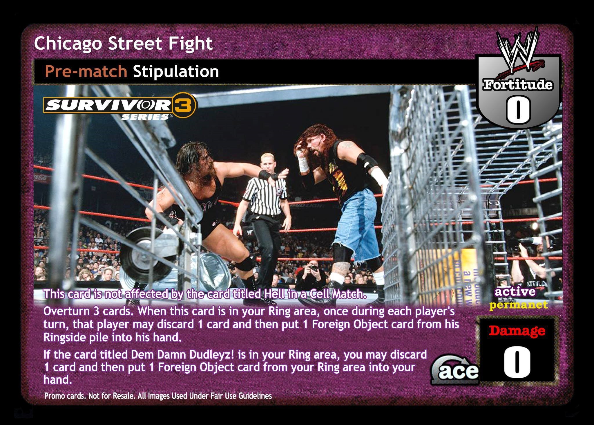 Overturn 3 cards. This card is not affected by the card titled Hell in a Cell Match. Once during each player's turn, that player may discard 1 card and then put 1 Foreign Object from his Ringside pile into his hand. When the card titled Dem Damn Dudleyz! is in your Ring area, once during each of your turns, you may also discard 1 card and then put 1 Foreign Object from your Ring area into your hand.